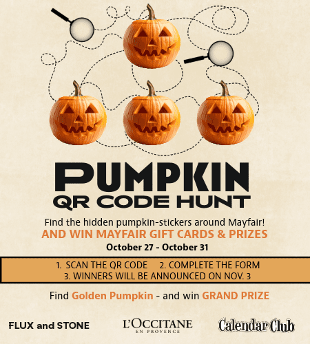 The hunt is on! Hidden pumpkin stickers are waiting to be found around Mayfair โ each one has a QR code that gives you a chance to win amazing prizes.