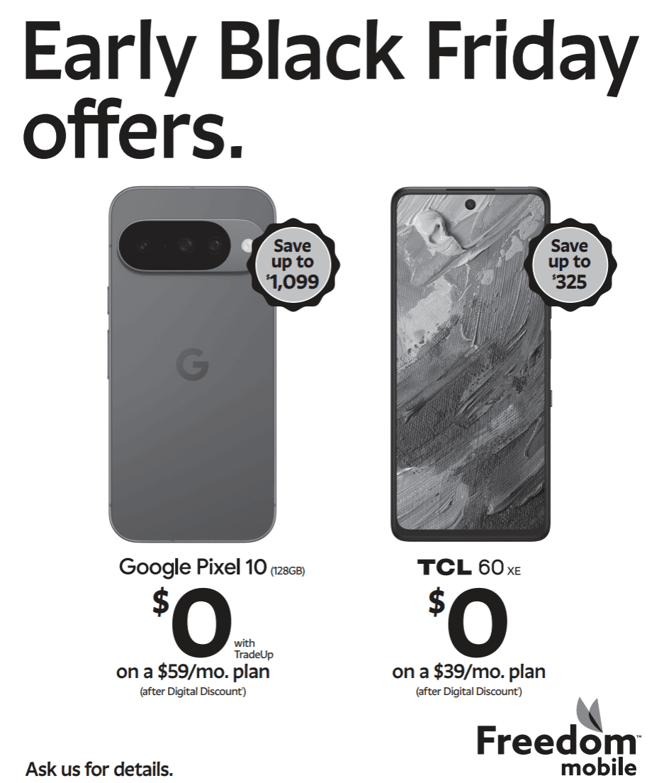 Date Nov 24 2025 - Dec 01 2025 Expired! Time All Day Unlock 3 Amazing Black Friday Deals at Freedom Mobile Take advantage of limited-time Black Friday savings! Visit Freedom Mobile at Mayfair to explore all three offers and even more to find the perfect plan for you.