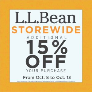 #!trpst#trp-gettext data-trpgettextoriginal=154#!trpen#Date#!trpst#/trp-gettext#!trpen# 10 月 08 - 13 2025 #!trpst#trp-gettext data-trpgettextoriginal=155#!trpen#Ongoing...#!trpst#/trp-gettext#!trpen# #!trpst#trp-gettext data-trpgettextoriginal=205#!trpen#Time#!trpst#/trp-gettext#!trpen# #!trpst#trp-gettext data-trpgettextoriginal=206#!trpen#All Day#!trpst#/trp-gettext#!trpen# Thanksgiving Sale at L.L.Bean Thanksgiving Offer: additional 15% OFF your purchase